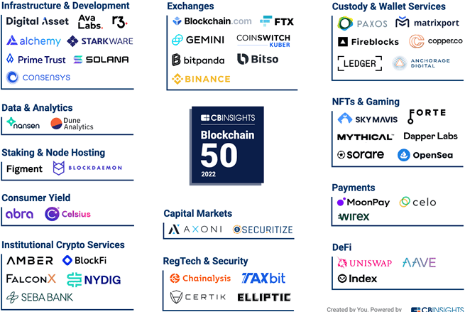 50 most influential crypto companies/ projects in 2022, CBInsights