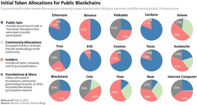 Token allocation for the initial release: When the project first launched, this can really tell you how the supply may be affected in the future. If for example most of the tokens have been sold to early investors then that could mean they'll be ready to sell whenever their lock-up expires and this is where a project like solana doesn't look too good. Ethereum was mostly sold to the public which means that there probably won't be much selling pressure from early investors anymore since ethereum has been around for so long.