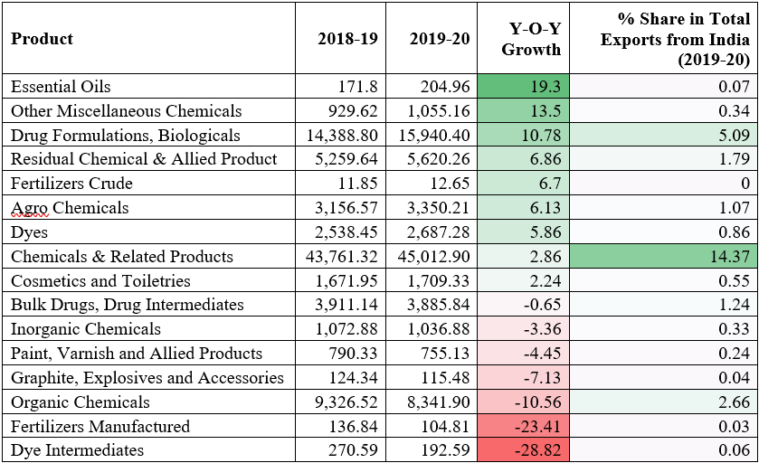 Indian Export of Chemical Products (In US$ Million), Ministry of Commerce and Industry